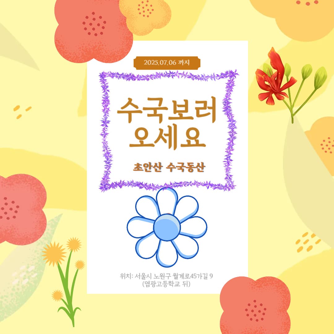 다가오는 주말, 서울에서 자연과 문화가 어우러진 여름 피크닉을 즐기고 싶다면, 초안산 수국동산으로 떠나보세요.